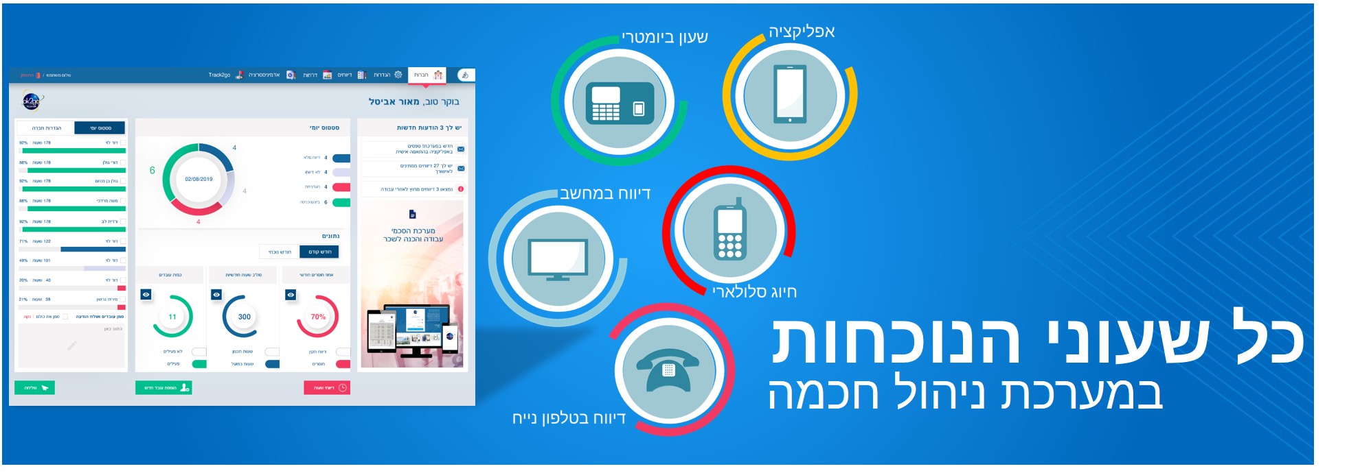 חברת ok2go הוקמה בשנת 2002 והיא פועלת בישראל ובמספר מדינות בעולם. אנו מתמחים בניהול מערכות שעוני נוכחות, איסוף דיווחי נוכחות מהשטח ובקרת עובדים ופרויקטים. אנו מספקים פתרונות למעל 2500 עסקים בישראל ביניהם חברות מובילות בתחומן כגון תנובה ,שירותי בריאות כללית, ויזה כאל, ויצ"ו, משרד הבריאות, עיריית תל אביב ועוד