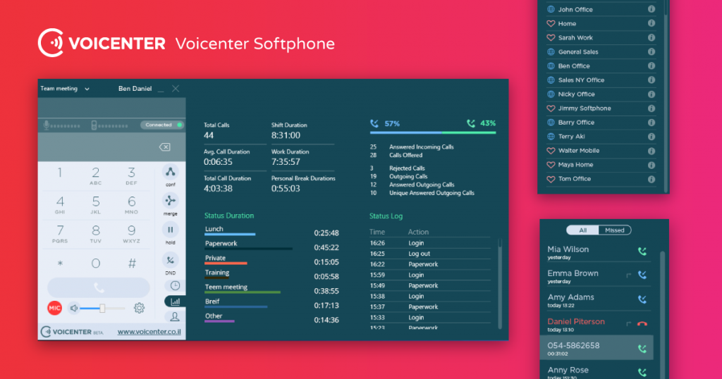 מערכת Voicenter Cloud מאפשרת חיבור פשוט של שירותי תקשורת שמגיעים ישירות ממי שמפיק את הטכנולוגיה ומספק את השירות. Voicenter היא מערכת תקשורת שתפורה לפי-מידתך ומאפשרת לך להפוך ידע לפתרונות תקשורת שעובדים. Voicenter Cloud מתממשק בקלות למערכות נוספות ומספק פתרון שלם, תהליכי עבודה מקוצרים וניהול אופטימלי של זמן ומשאבים. המערכת מאפשרת לחייג ישירות ממסך המחשב! התממשקות של מערכת ניהול הלקוחות עם מערכת הטלפוניה, הקפצת מסך ומהירות בחיוג בין השיחות.